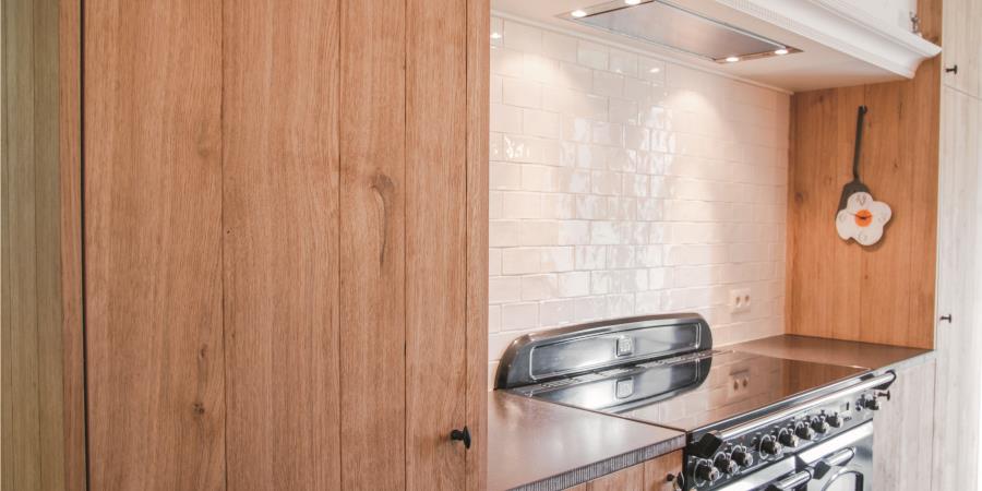 Voor de houten wanden werd gebruik gemaakt van fineerhout. Kwaliteit is ons stokpaardje.